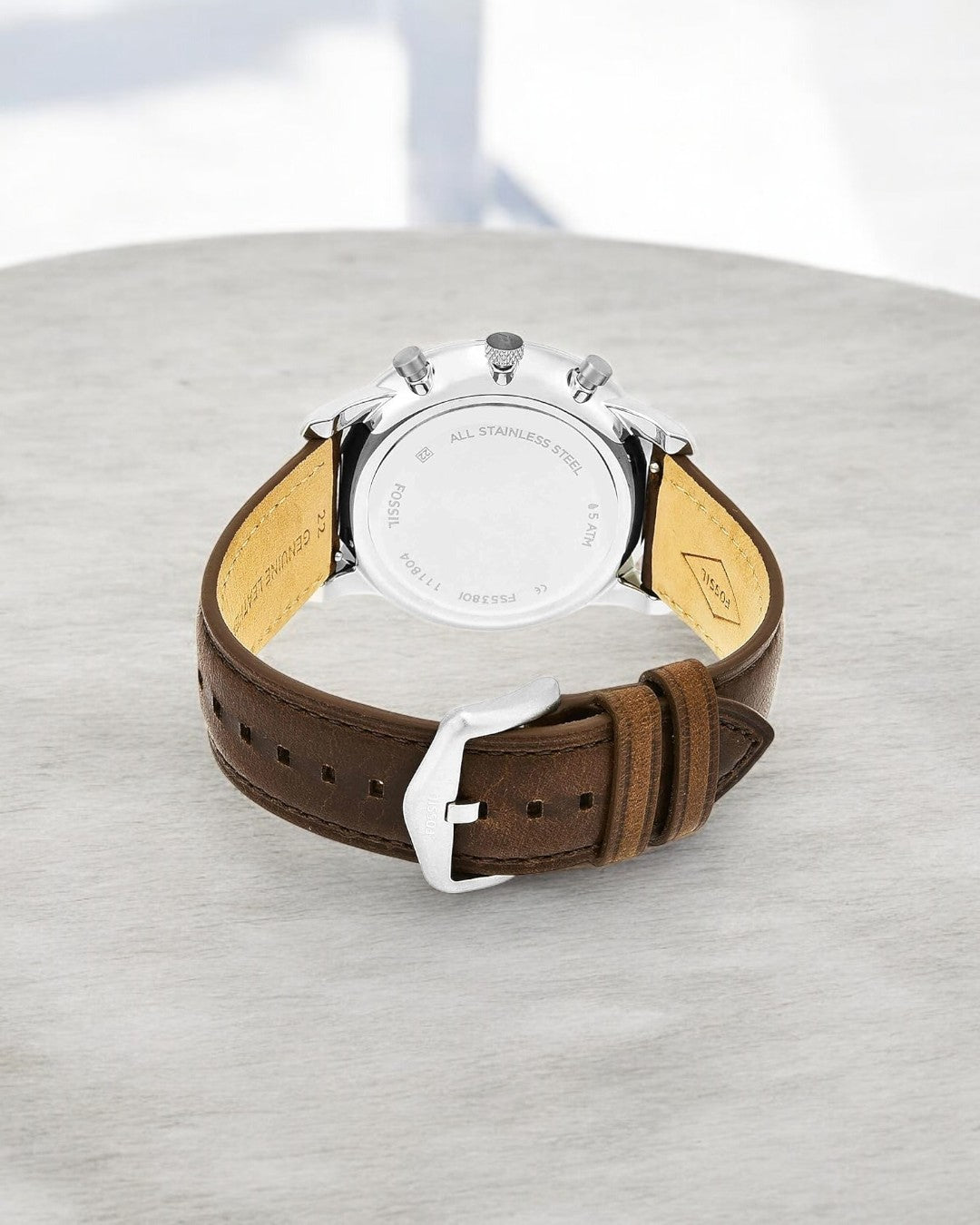 Foss-il Analog Off-White Dial Brown Band Men's Stainless Steel Watch